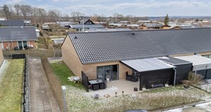 Den anden boligmulighed i byen er rækkehuset på Skovhaven 6. Denne ejendom er lidt mindre med 110 kvadratmeter, fordelt på 3 værelser, og giver et mere kompakt men komfortabelt hjem.